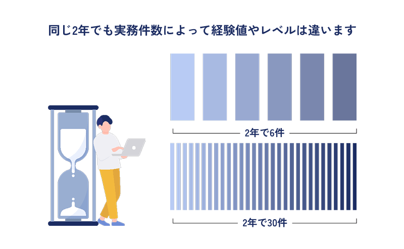 同じ年数でも、経験している件数が違うとスキルレベルの印象はまったく変わりますよね。